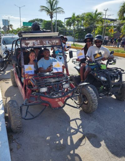 Con capacidad para cuatro personas, este vehículo te permite compartir la aventura mientras atraviesas senderos selváticos, playas espectaculares y sitios arqueológicos. Siente la brisa cálida y maravíllate con los colores vibrantes de la Riviera Maya, deteniéndote en los rincones que más te atraigan.